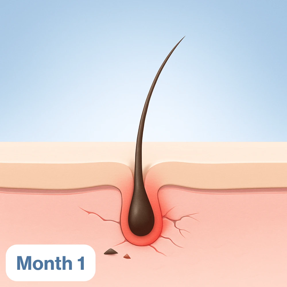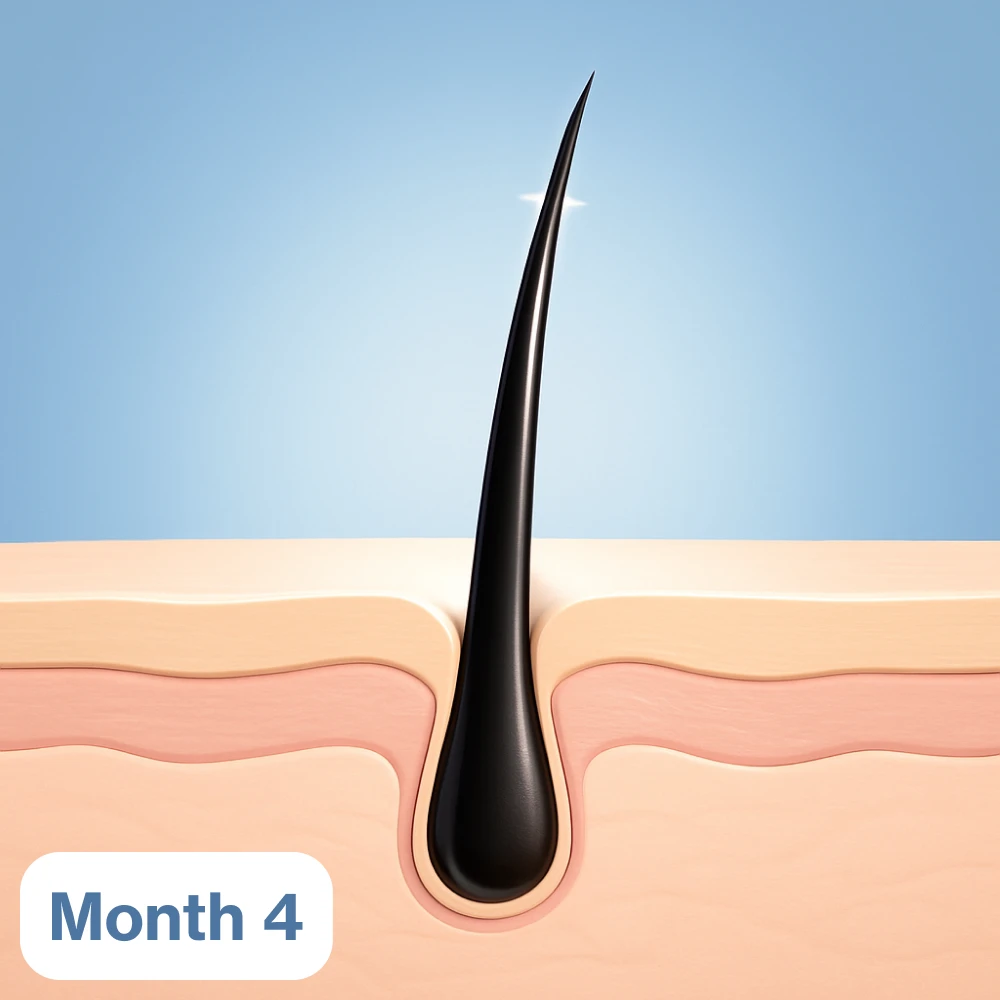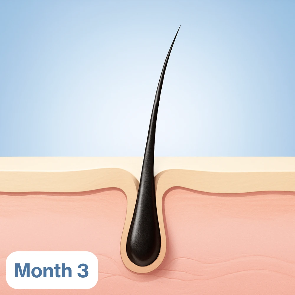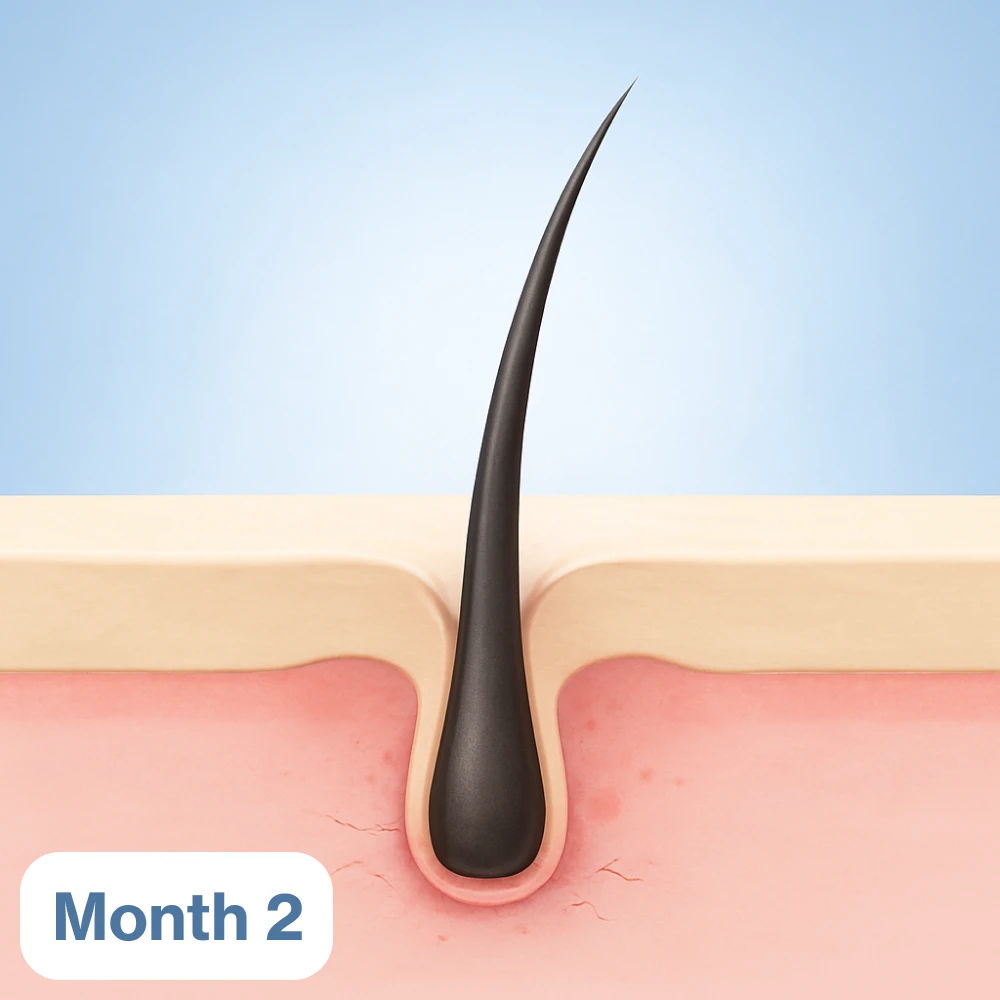 With the right care, the follicle begins to recover. Redness fades, nutrients reach the root, and new strands start to look thicker—even if they’re not perfect yet. Your scalp is calming, and early improvement is visible.